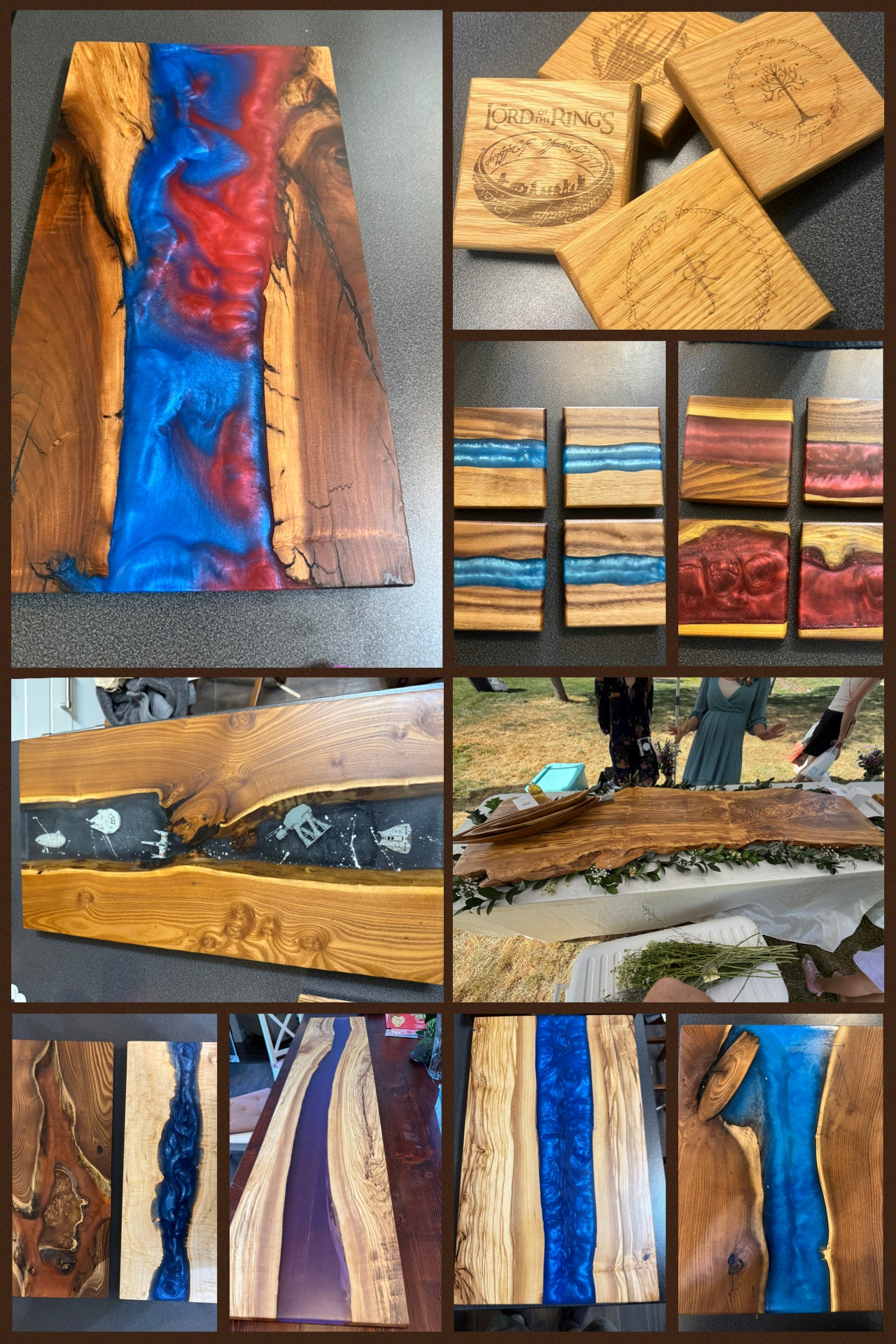 Find your perfect hardwood charcuterie board, table, or coasters.