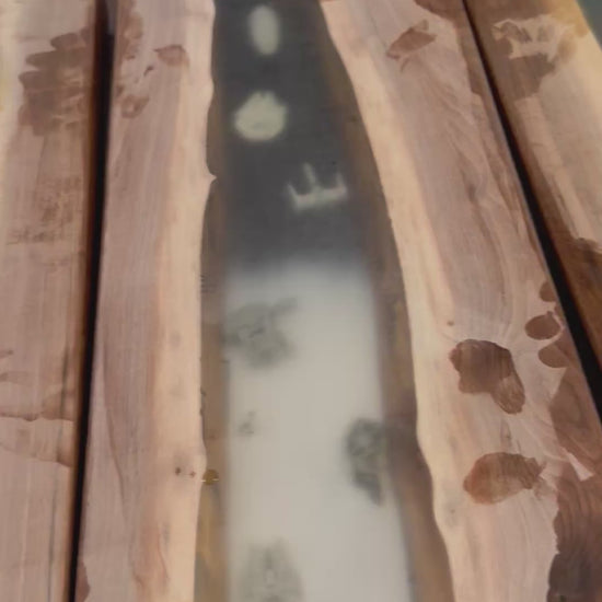 It is live edge with layered resin pour to give an out of this world look to a set of 1995 special edition Star Wars Micro Machines.
